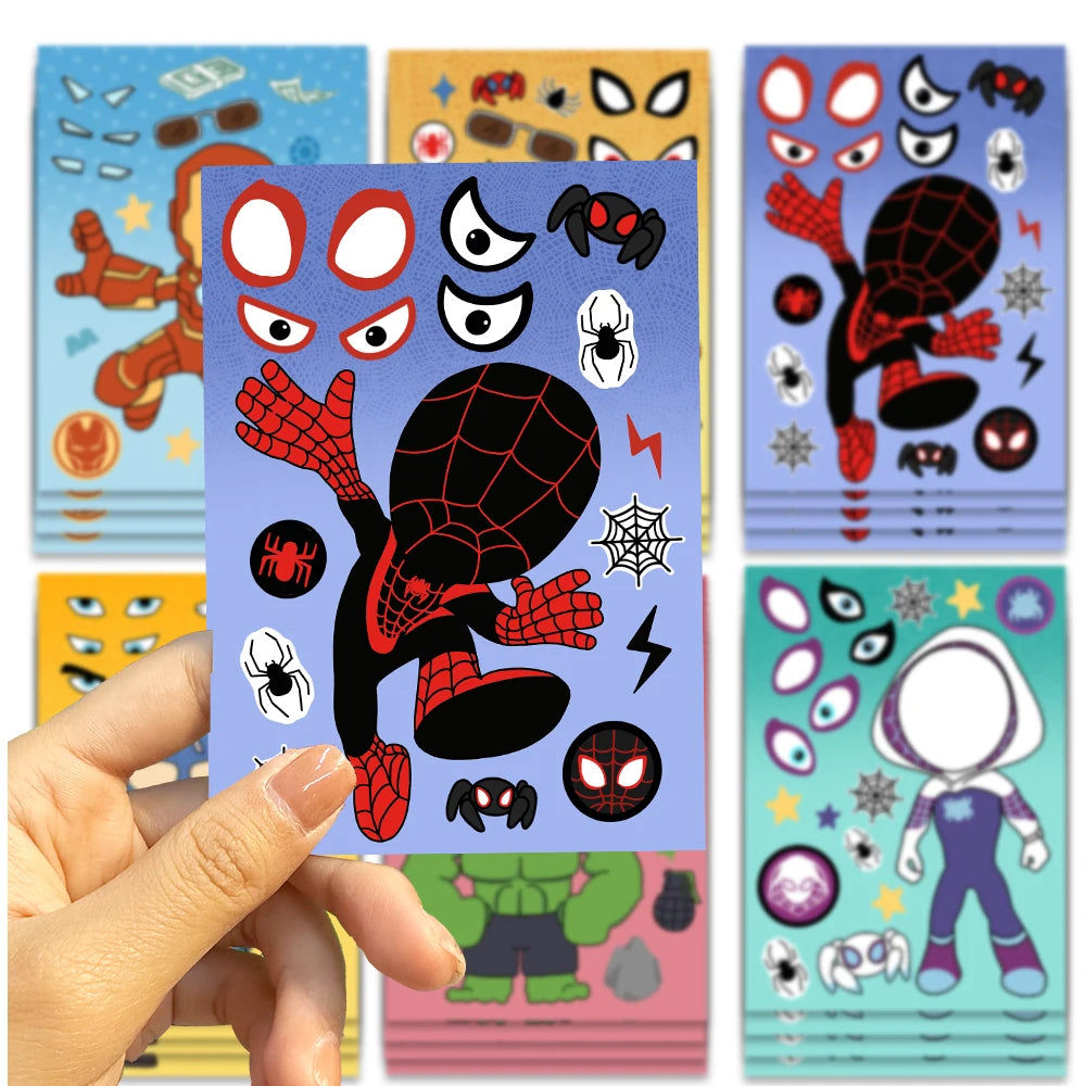 8/16/24pcs Spider-Man & Iron Man Make-A-Face Sticker Set – DIY Puzzle Anime Stickers for Kids