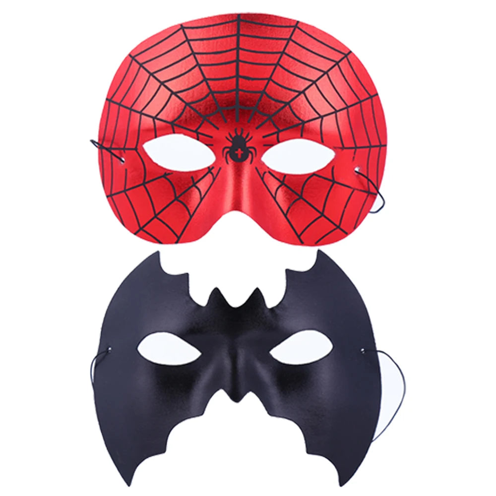 Spider-Man-inspired eye mask with optional bat pattern for versatile superhero play